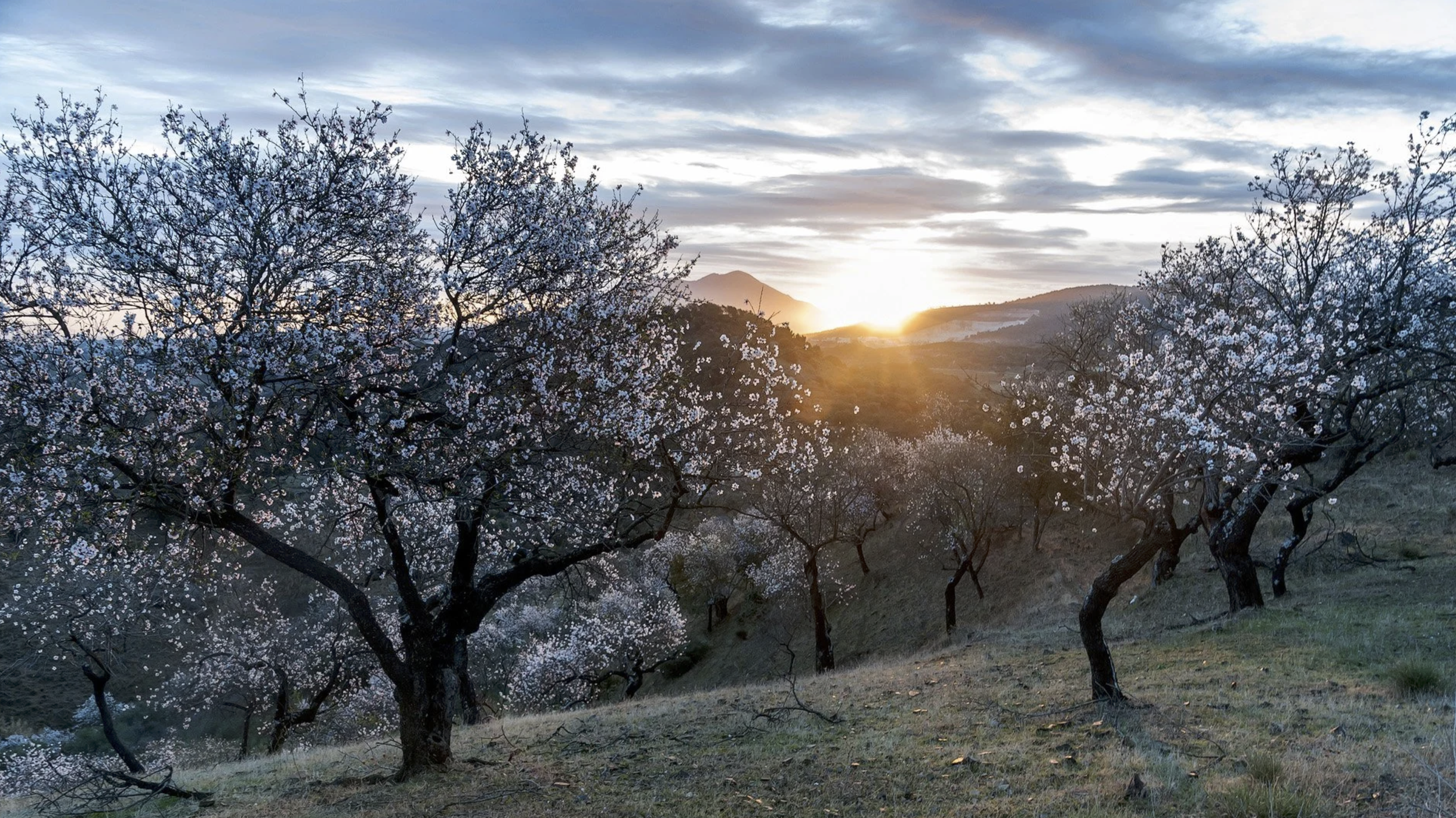 Korkekar, blommande mandelträd och öknar