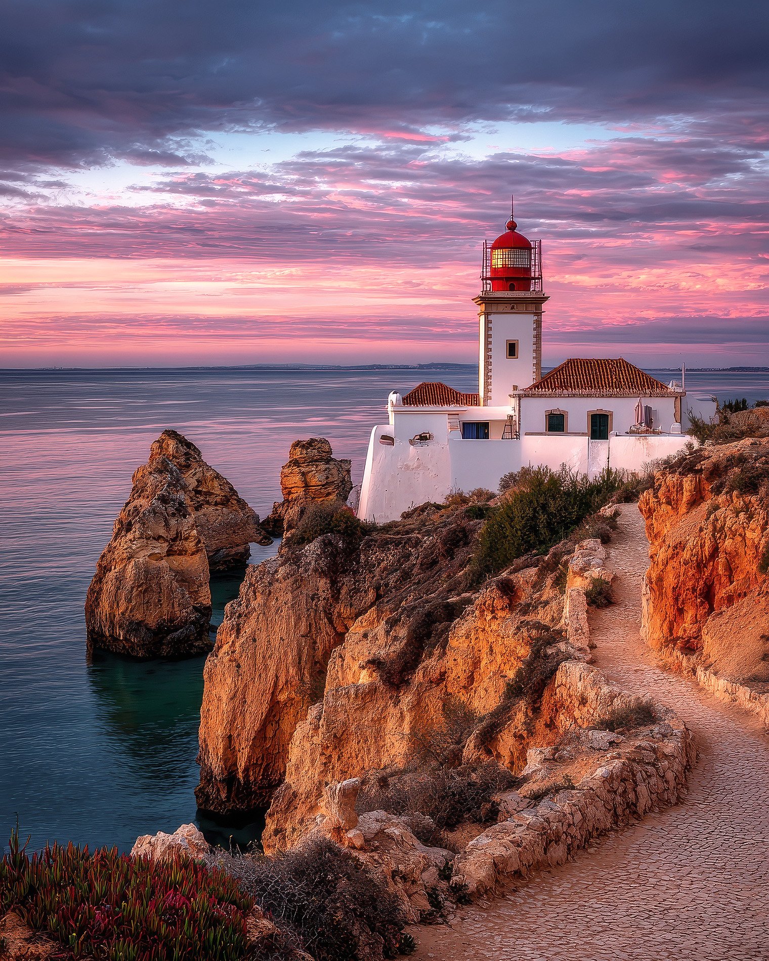 Med Sagres som vår fasta bas ger vi oss tid att verkligen lära känna Algarves vilda och storslagna kust. Här styr naturen tempot, och vi anpassar oss efter vind, väder och framför allt ljuset. Tidiga morgnar möter vi gryningens första mjuka glöd när den sveper in över exempelvis Ponta da Piedades ikoniska havsgrottor, formar klipporna och speglar sig i Atlanten. När dagen går mot kväll söker vi oss vidare längs kusten, tills skymningen tänder eld på klipporna vid Praia da Cordoama eller Praia de Castelejo och landskapet fullkomligt badar i varma, dramatiska toner.